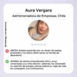Antes: Llegó a mí sintiéndose sola y desilusionada después de haber roto con su pareja. Ahora: Con mi método aprendió a priorizarse y hoy disfruta de una relación que suma… Leer más “Aura V. (Chile)”
